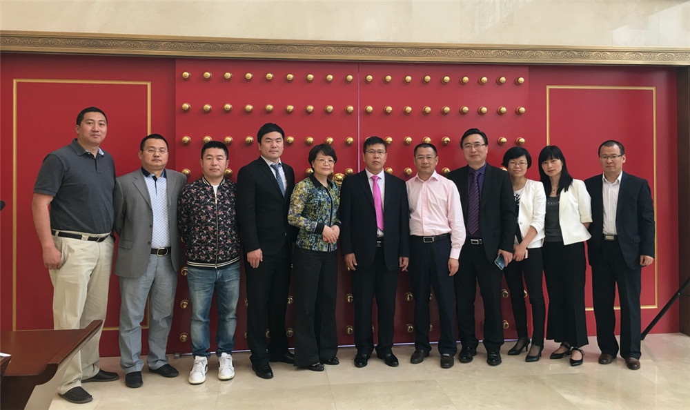 (中间:2138cn太阳集团城公司董事长刘国鹰先生,左一:西班牙PE公司化勇先生,左二:2138cn太阳集团城北京经销商总经理胡斌先生,左三:卓中资本于洋先生,左四:2138cn太阳集团城公司董秘吴海龙先生,左五:桐乡市人民政府副市长潘敏芳女士,右五:桐乡市科技局局长卢爱驰先生,右四:桐乡市委人才办副主任卜掌浩先生,右三:桐乡市人民政府秘书张丽萍女士,右二:桐乡市科技创业园主任倪勤华女士,右一:国联证券机构业务负责人姜亦民先生)